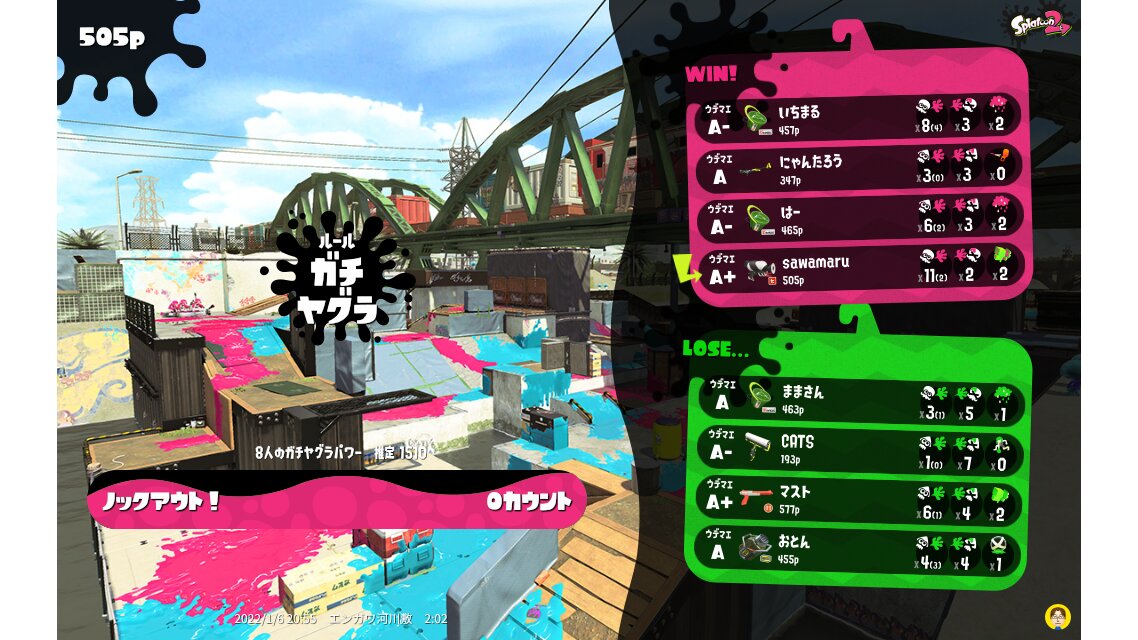 | Name | Weapon | Level | Rank | Inked | k+a/sp | k/d |