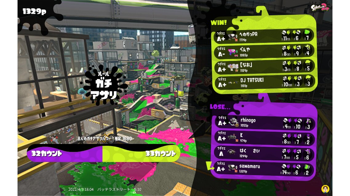 | Name | Weapon | Level | Rank | Inked | k+a/sp | k/d |