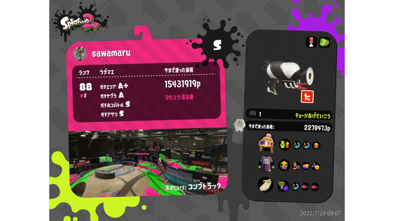 | Name | Weapon | Level | Rank | Inked | k+a/sp | k/d |