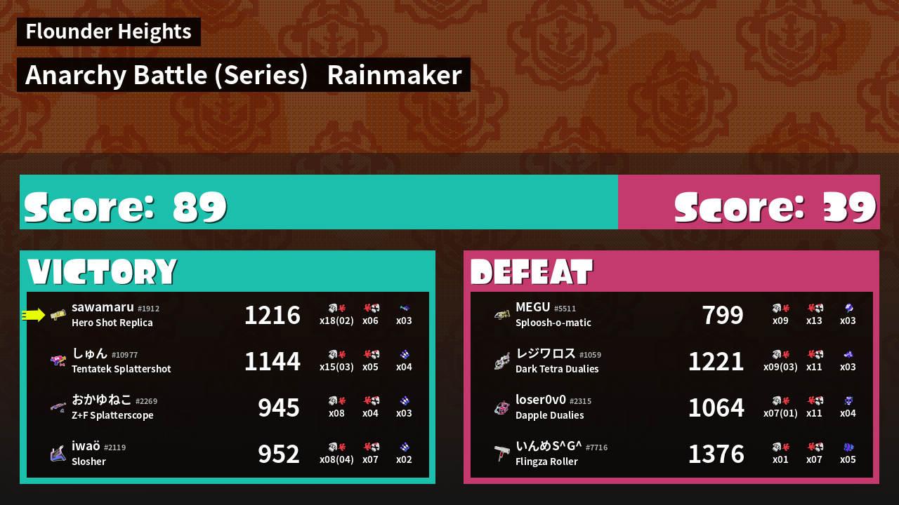 Kills / Deaths | 16 + 2 / 6 > Kill Ratio: 2.67 | ||