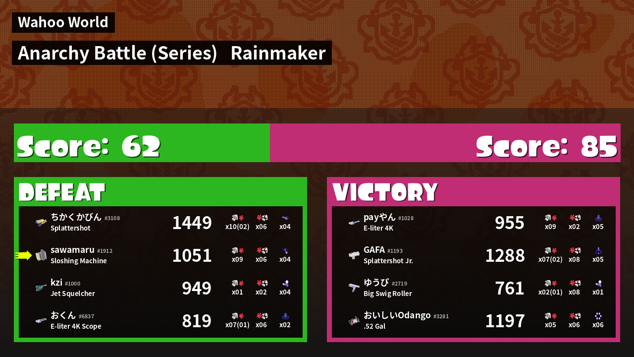 | Medals | #1 Popular Target #1 Enemy Splatter #1 Rainmaker Stopper | ||