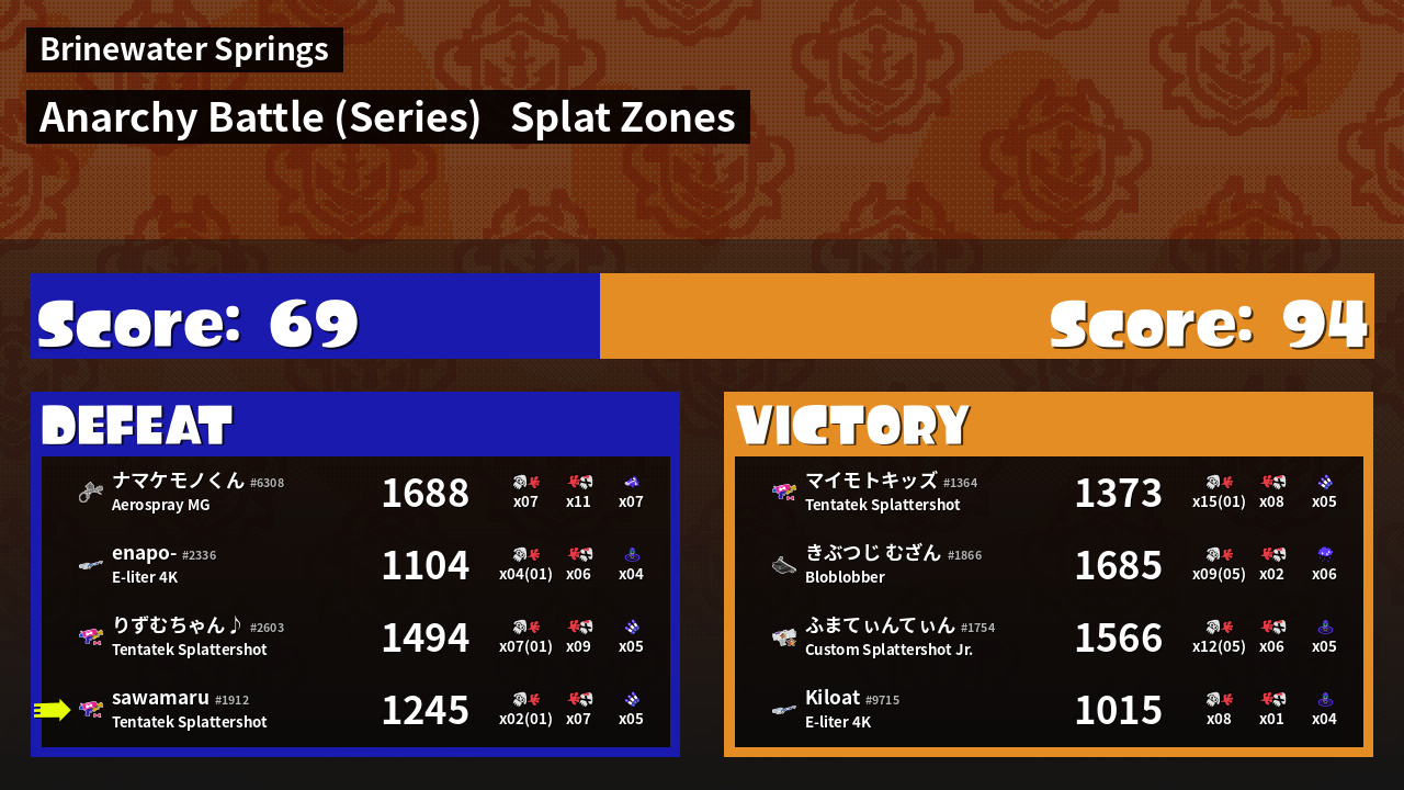 | Mode | Splat Zones - Anarchy Battle (Series) | ||