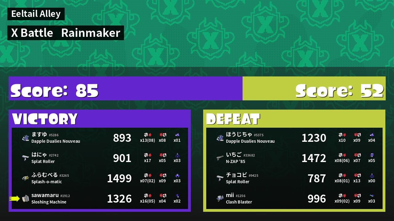 Kills / Deaths | 11 + 5 / 4 > Kill Ratio: 2.75 | ||