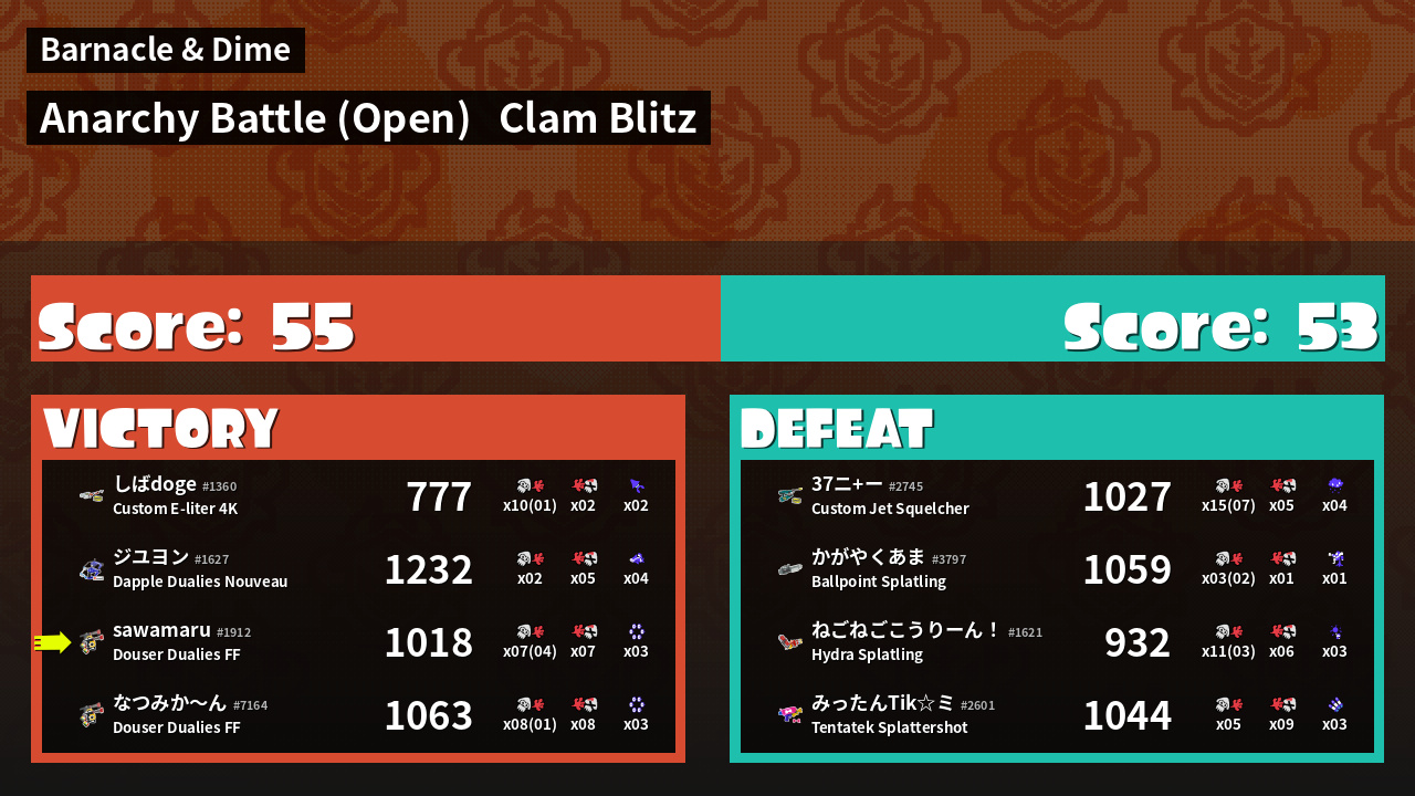 | Mode | Clam Blitz - Anarchy Battle (Open) | ||