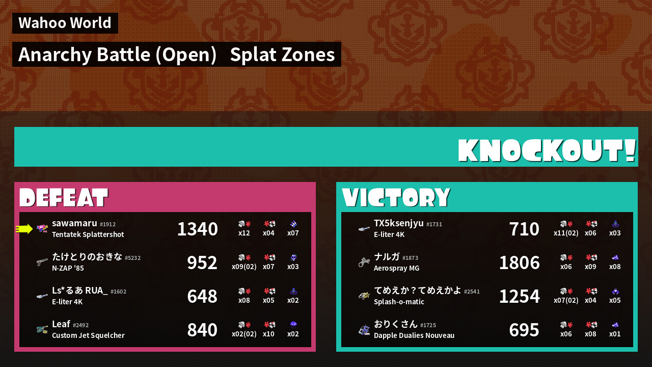 | Mode | Splat Zones - Anarchy Battle (Open) | ||