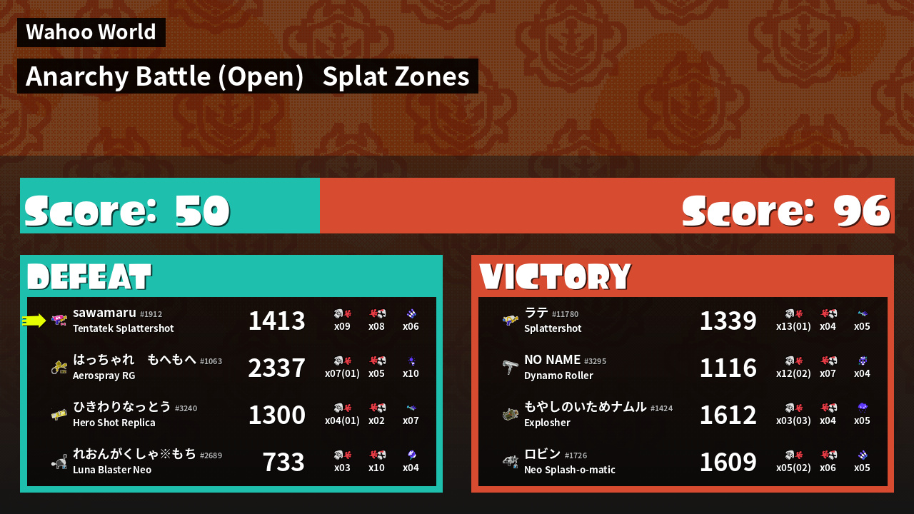 | Mode | Splat Zones - Anarchy Battle (Open) | ||