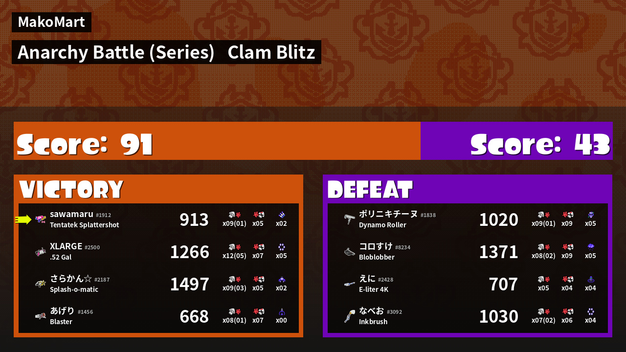 Kills / Deaths | 8 + 1 / 5 > Kill Ratio: 1.60 | ||