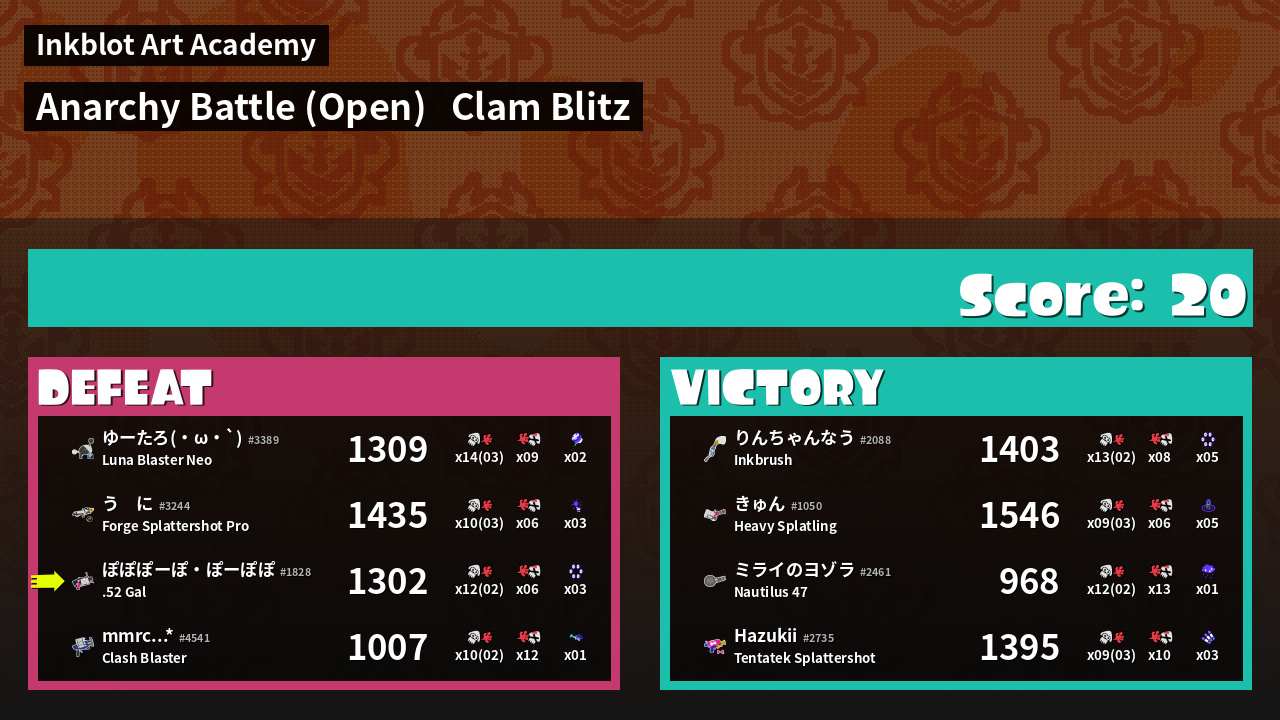 Name | Weapon | Inked | ![]() |