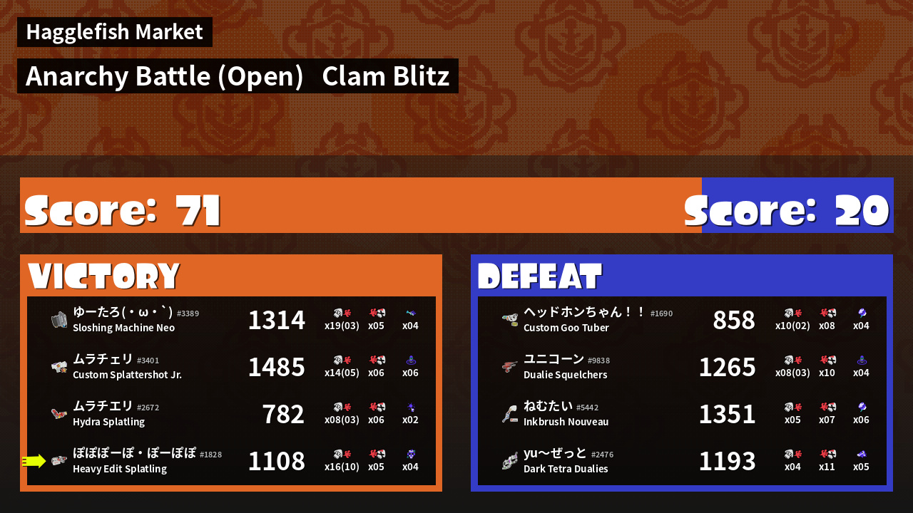 | Mode | Clam Blitz - Anarchy Battle (Open) | ||