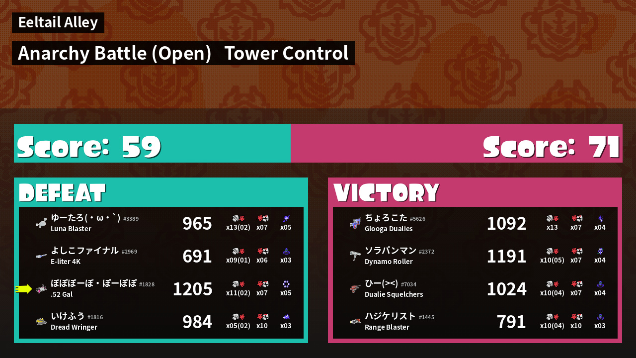 | Medals | #1 Turf Inker #1 Splat Assister #1 Tower Stopper | ||