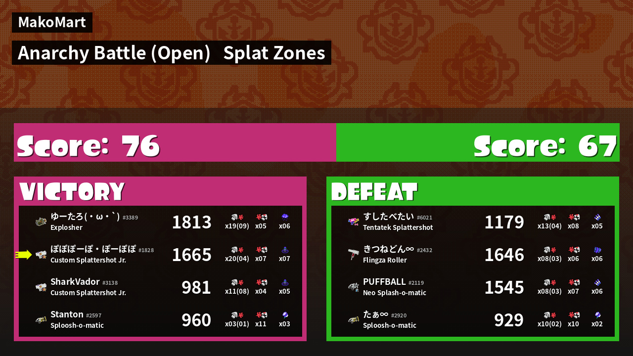 | Mode | Splat Zones - Anarchy Battle (Open) | ||