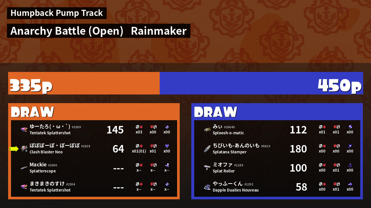 | Mode | Rainmaker - Anarchy Battle (Open) | ||