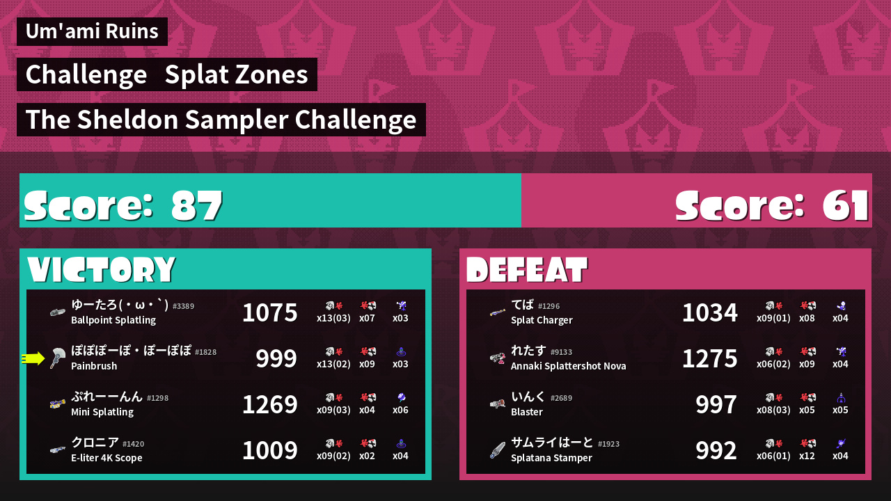 Challenge | The Sheldon Sampler Challenge Make the most of random weapons! | ||