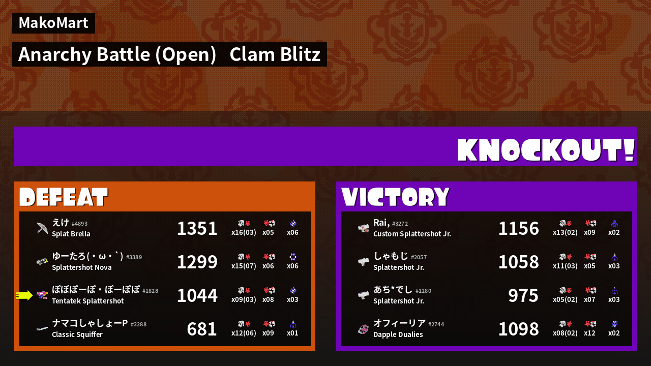 | Mode | Clam Blitz - Anarchy Battle (Open) | ||