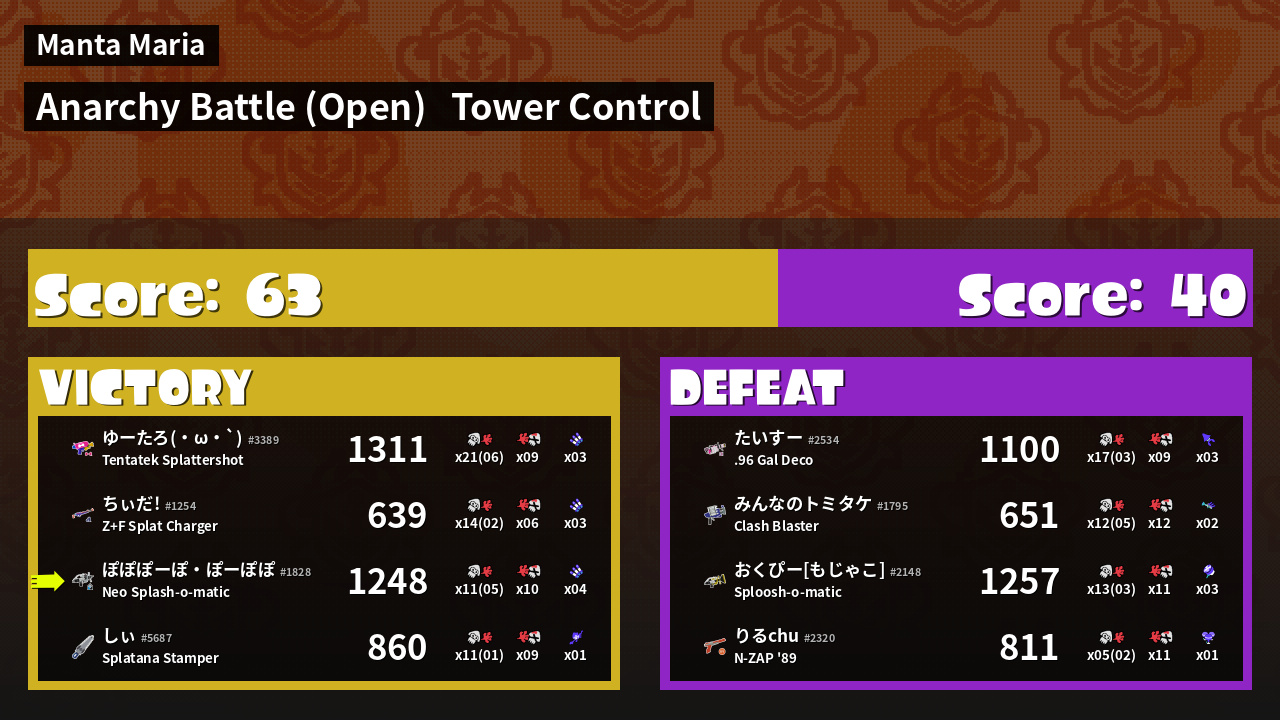 | Mode | Tower Control - Anarchy Battle (Open) | ||