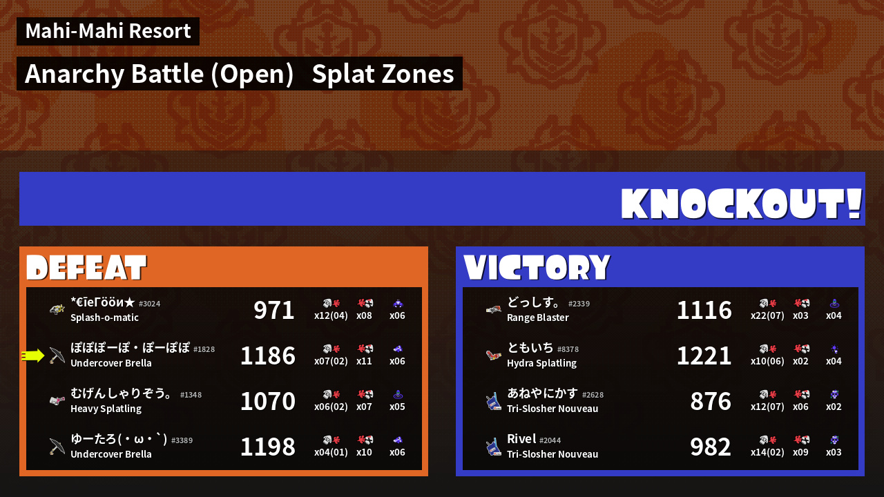 | Mode | Splat Zones - Anarchy Battle (Open) | ||