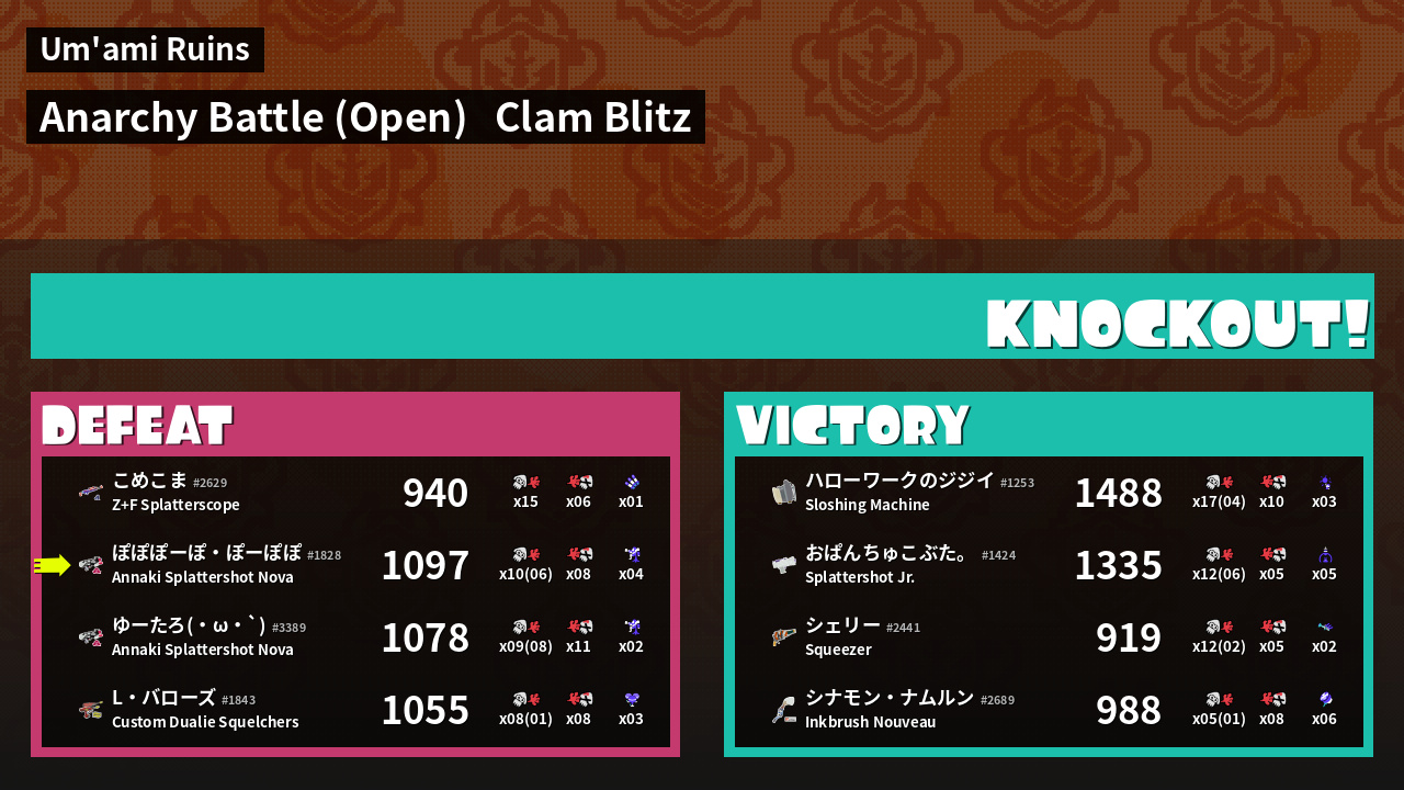 | Mode | Clam Blitz - Anarchy Battle (Open) | ||