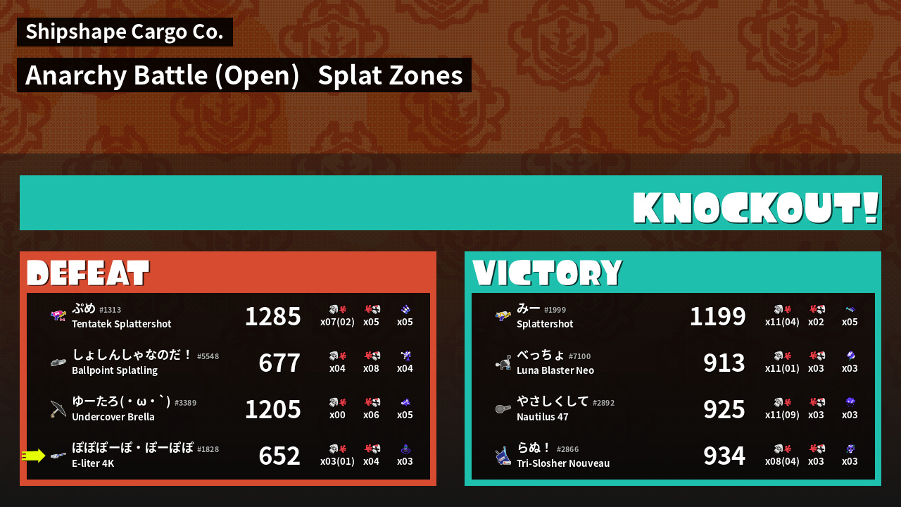 | Mode | Splat Zones - Anarchy Battle (Open) | ||