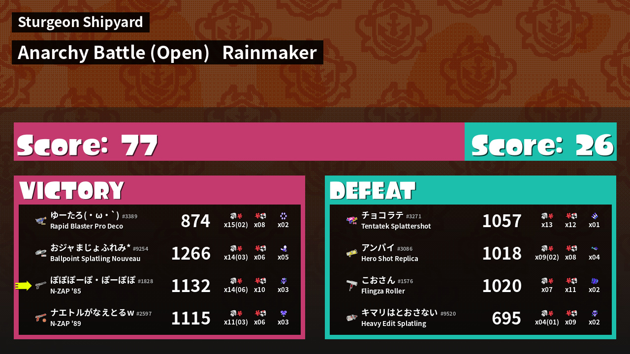 | Mode | Rainmaker - Anarchy Battle (Open) | ||