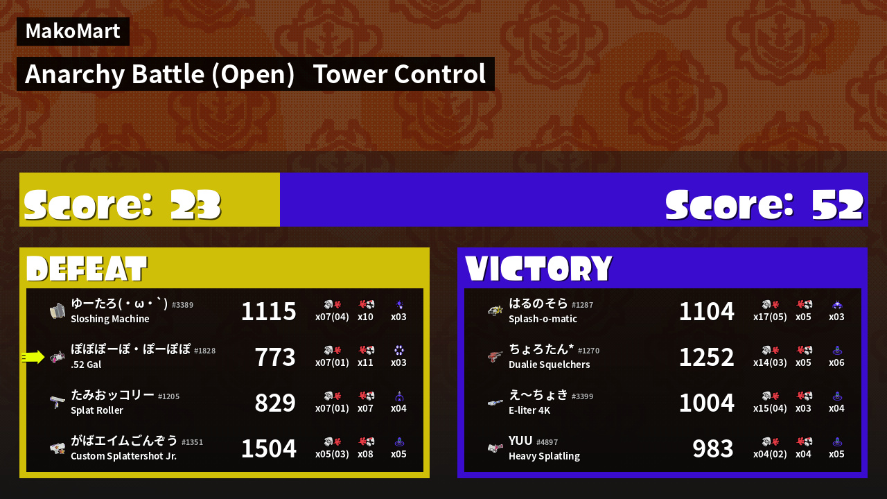 | Mode | Tower Control - Anarchy Battle (Open) | ||