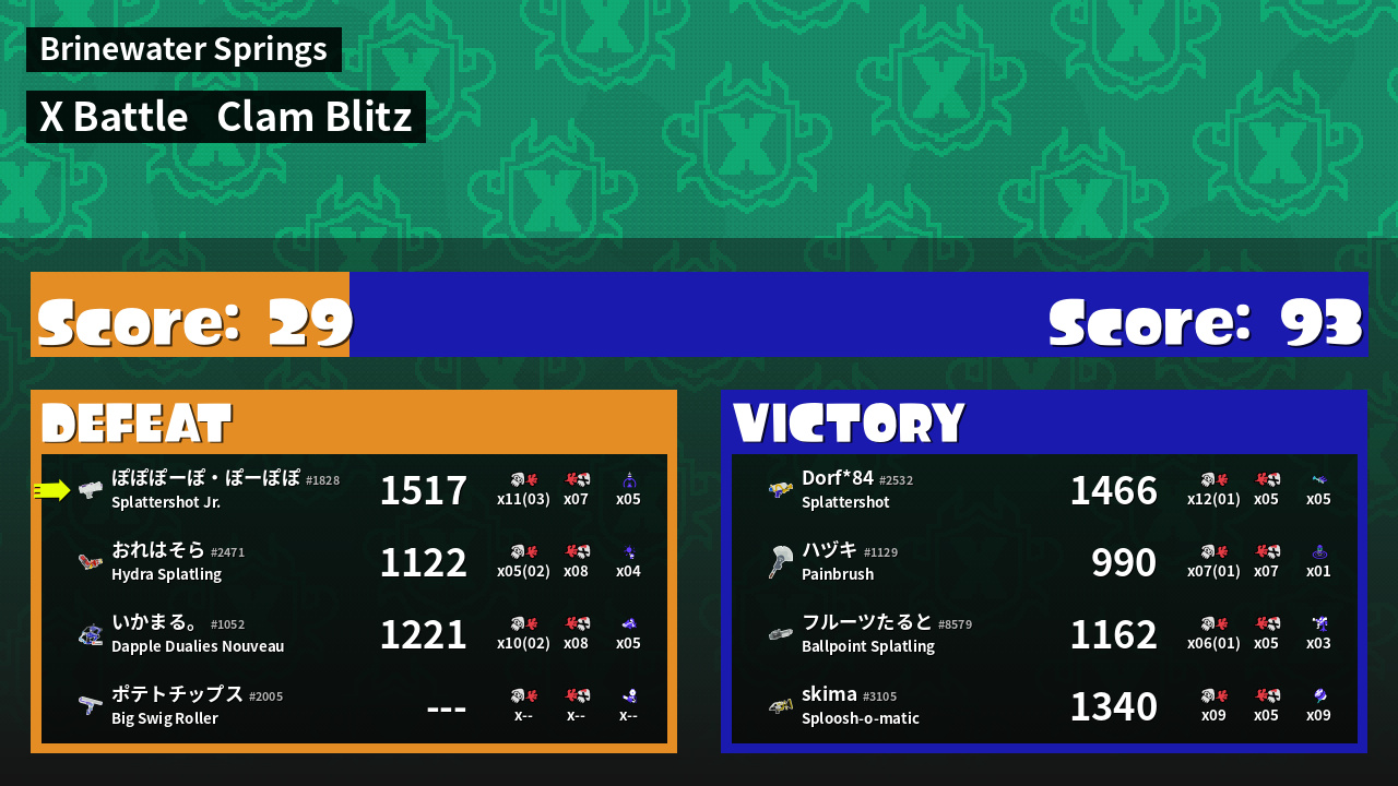 | Medals | #1 Overall Splatter #1 Turf Inker #1 Enemy Splatter | ||