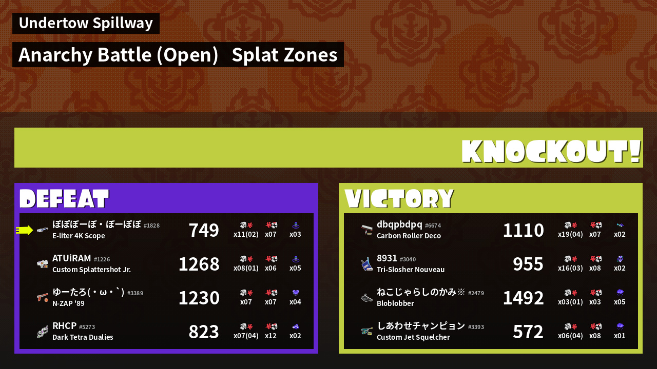 | Mode | Splat Zones - Anarchy Battle (Open) | ||