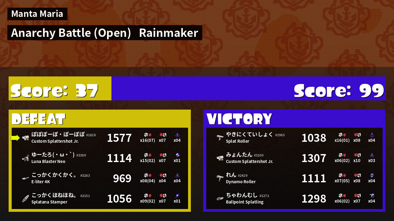 | Mode | Rainmaker - Anarchy Battle (Open) | ||