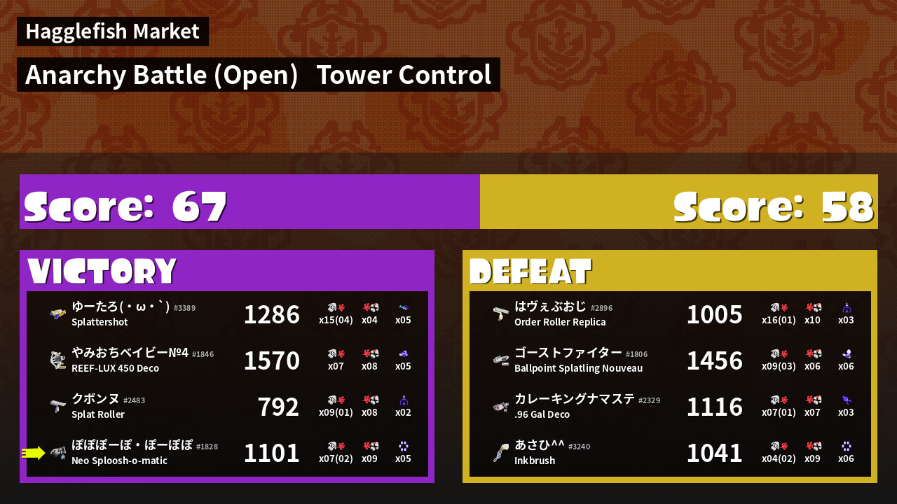 | Mode | Tower Control - Anarchy Battle (Open) | ||