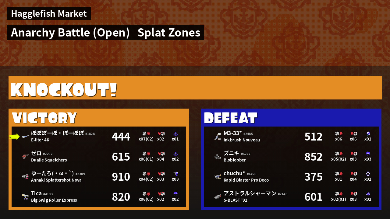 | Mode | Splat Zones - Anarchy Battle (Open) | ||