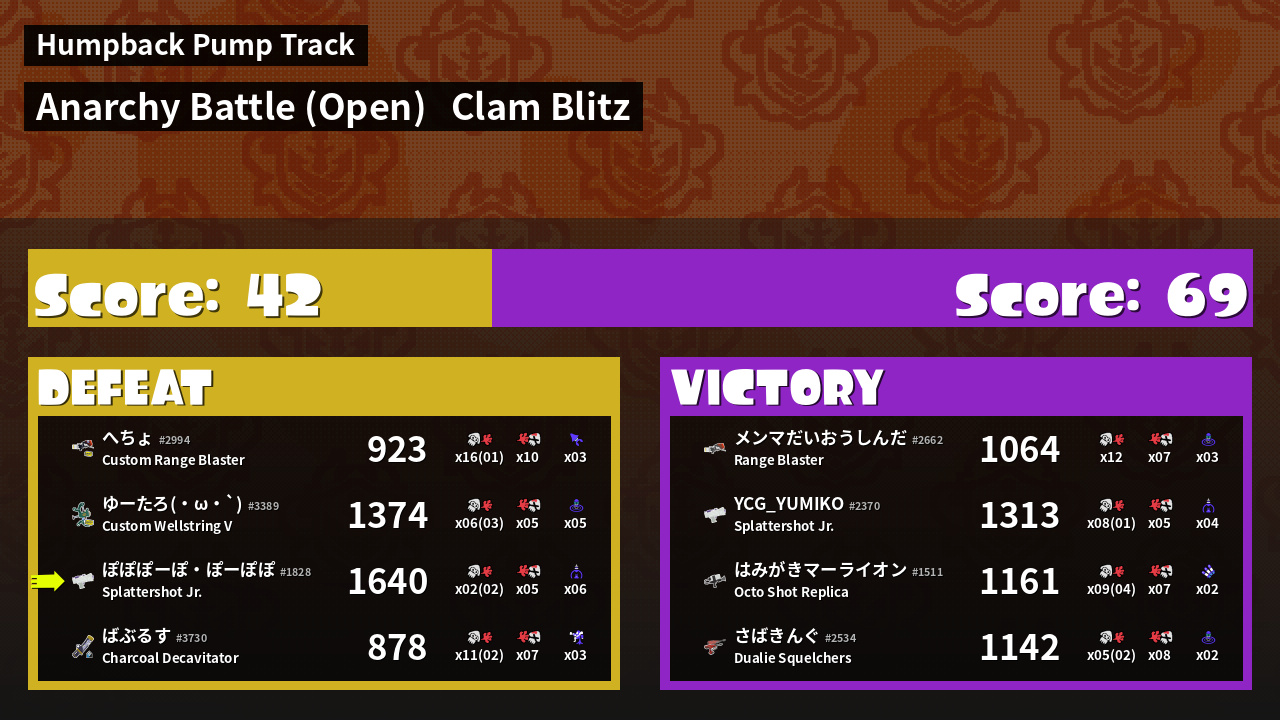 | Mode | Clam Blitz - Anarchy Battle (Open) | ||