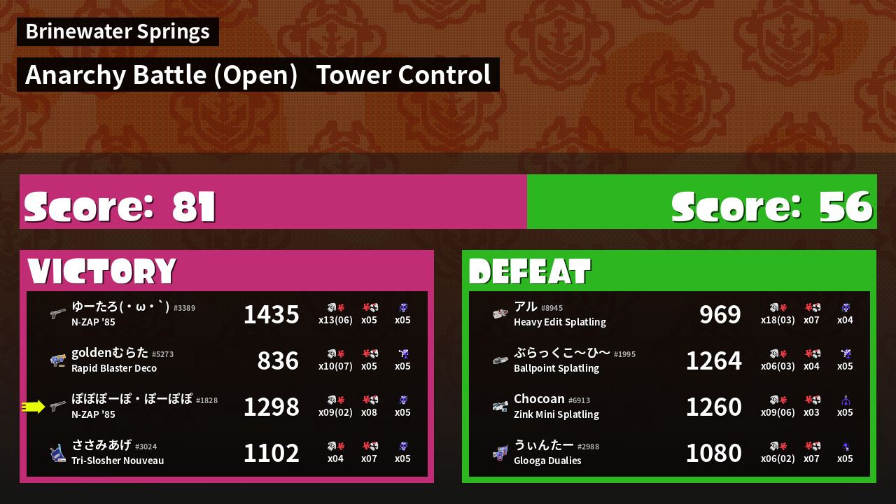 | Mode | Tower Control - Anarchy Battle (Open) | ||