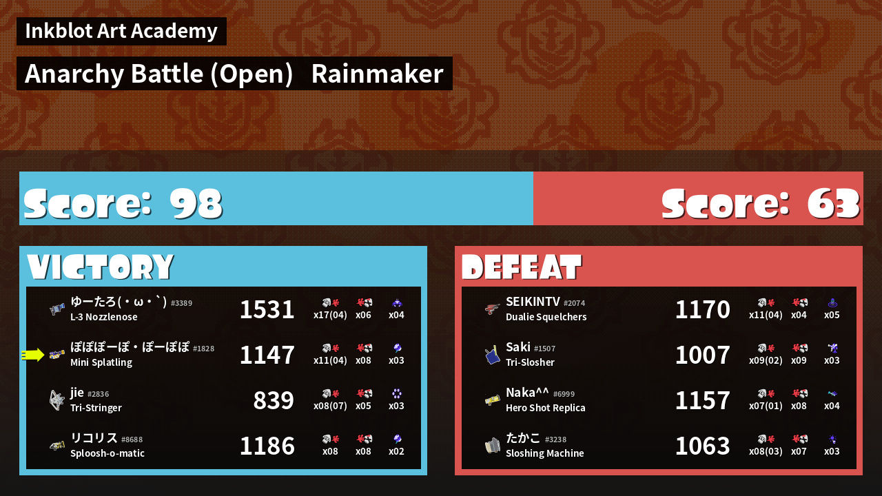 Name | Weapon | Inked | ![]() |
