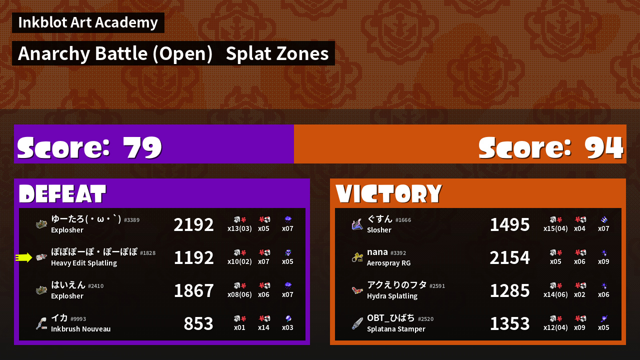| Mode | Splat Zones - Anarchy Battle (Open) | ||