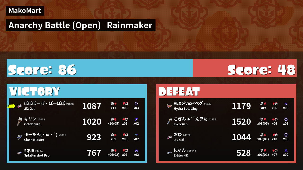 | Mode | Rainmaker - Anarchy Battle (Open) | ||