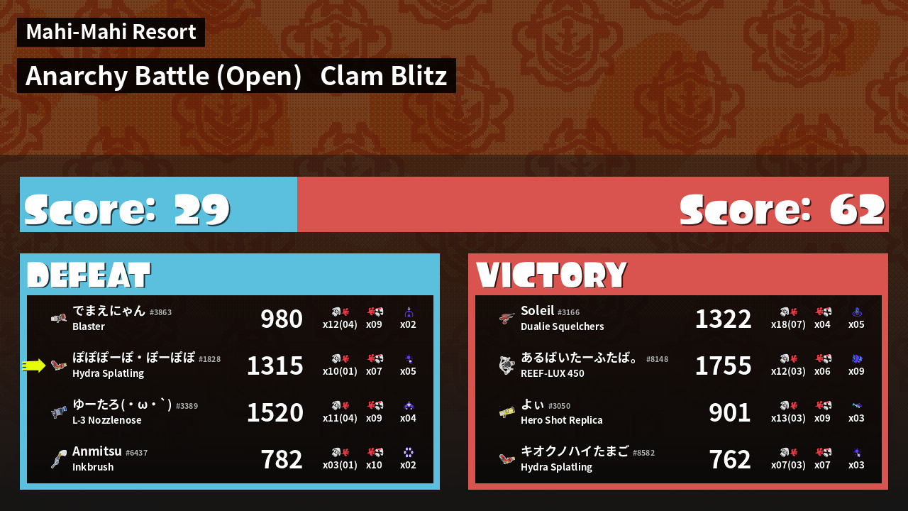 Result | Defeat Time is up | ||