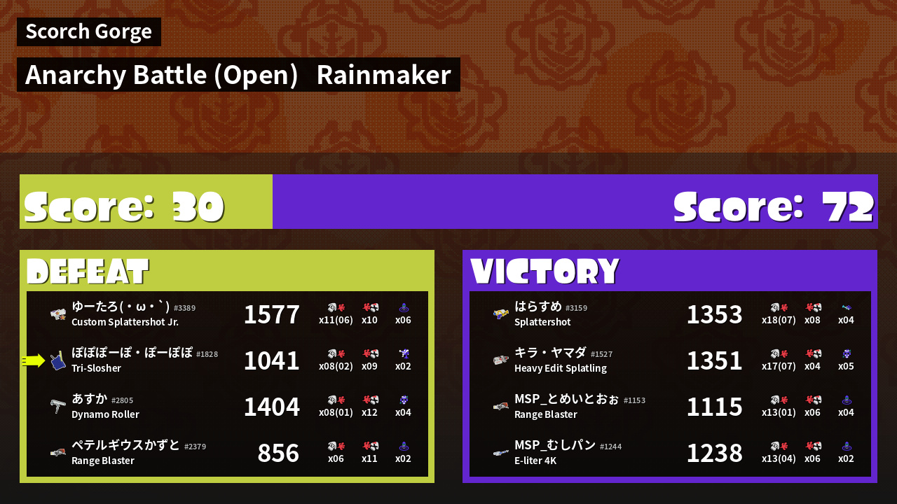 | Mode | Rainmaker - Anarchy Battle (Open) | ||