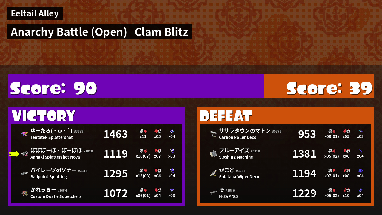 | Mode | Clam Blitz - Anarchy Battle (Open) | ||