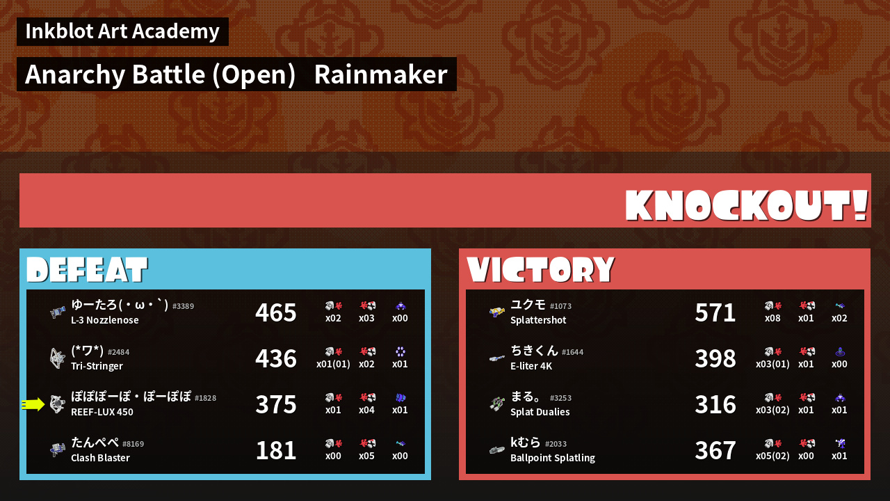 Name | Weapon | Inked | ![]() |