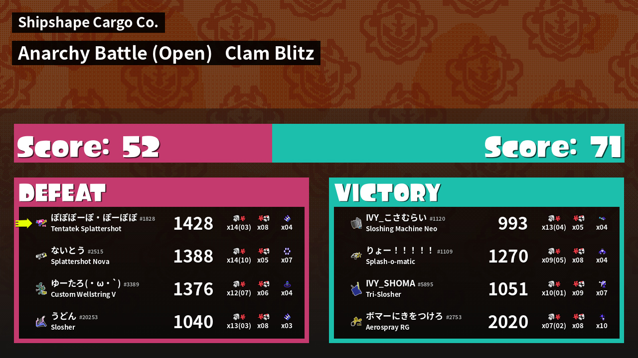 | Mode | Clam Blitz - Anarchy Battle (Open) | ||