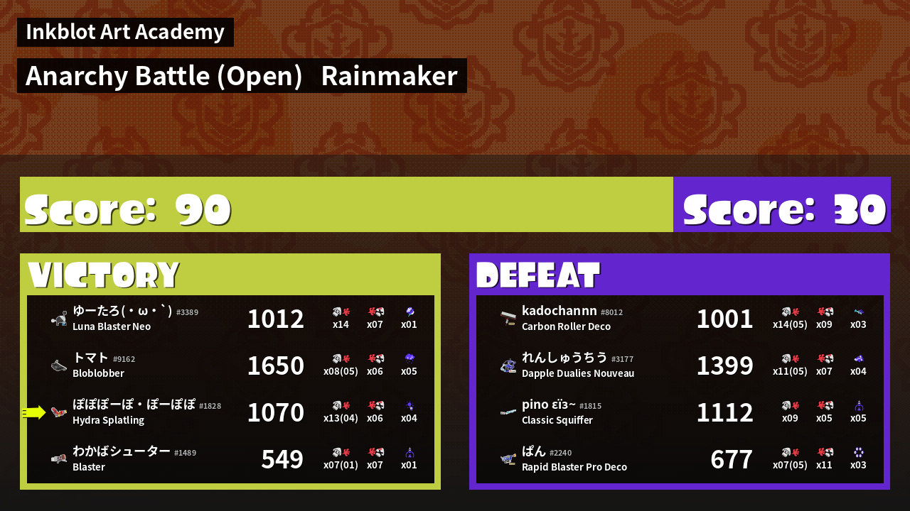 Name | Weapon | Inked | ![]() |