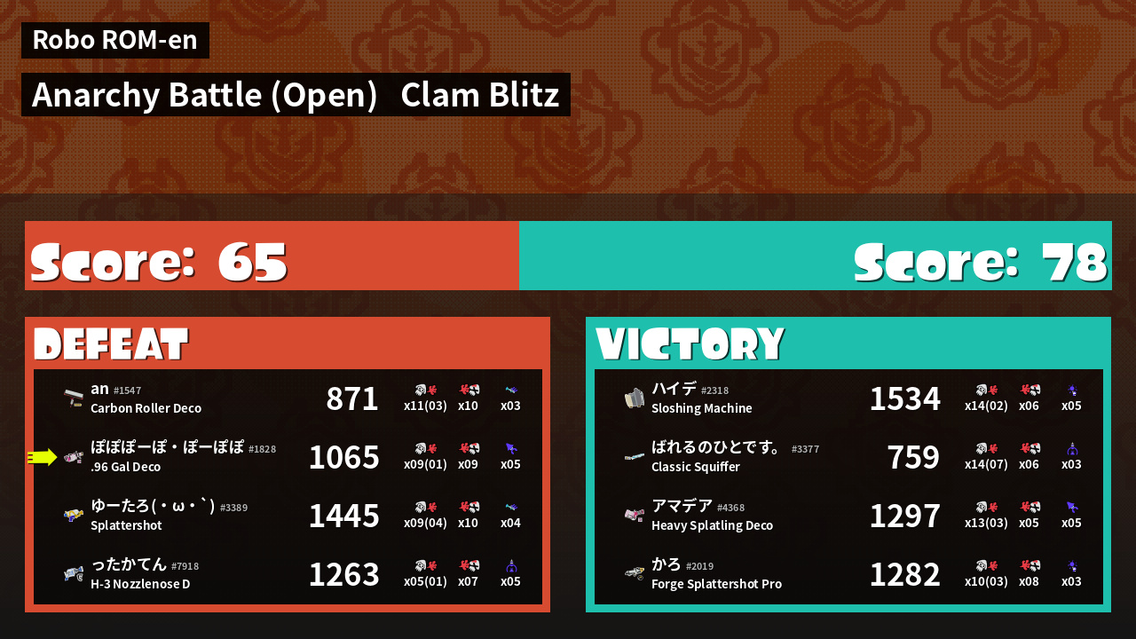 | Mode | Clam Blitz - Anarchy Battle (Open) | ||