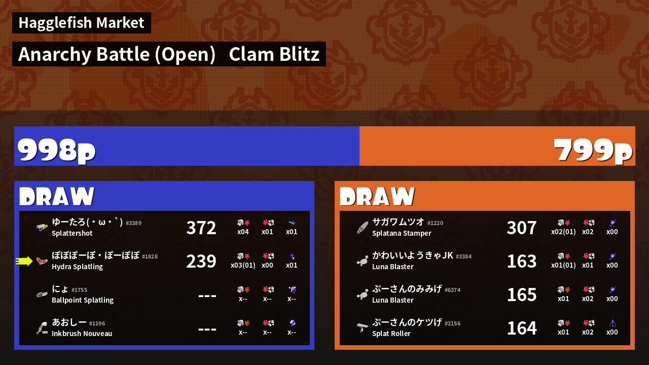 | Mode | Clam Blitz - Anarchy Battle (Open) | ||