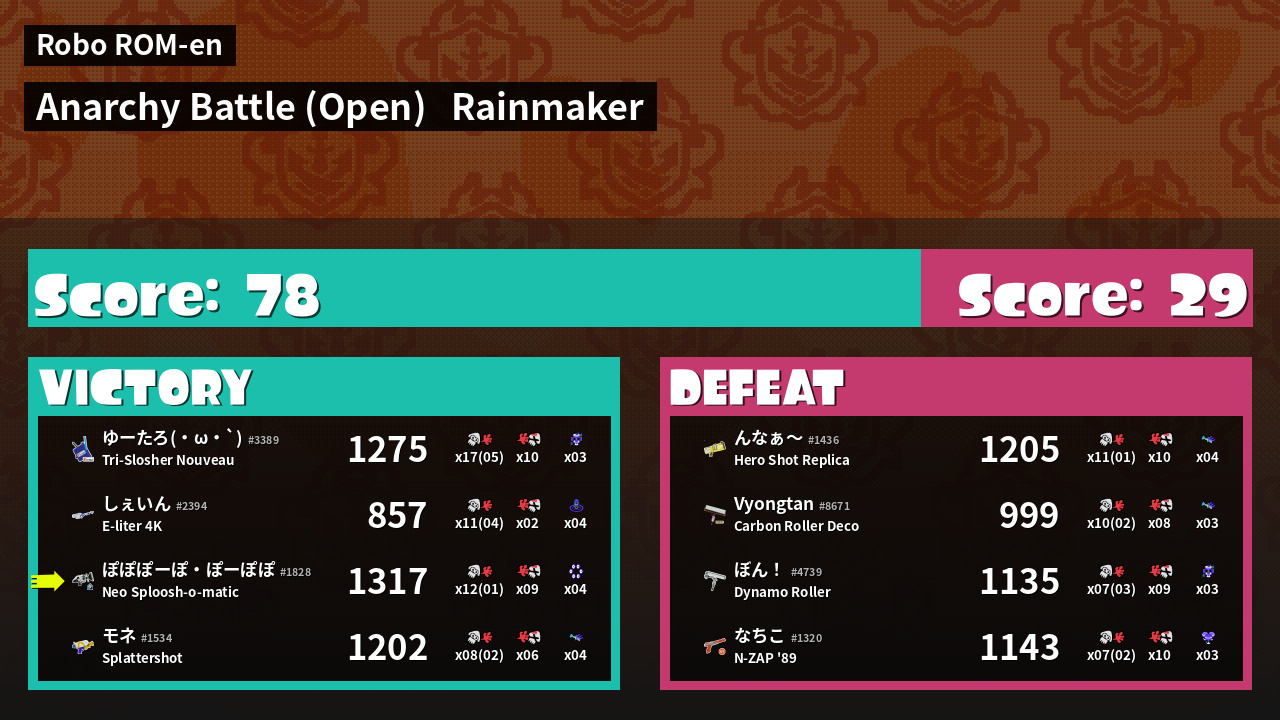 | Mode | Rainmaker - Anarchy Battle (Open) | ||