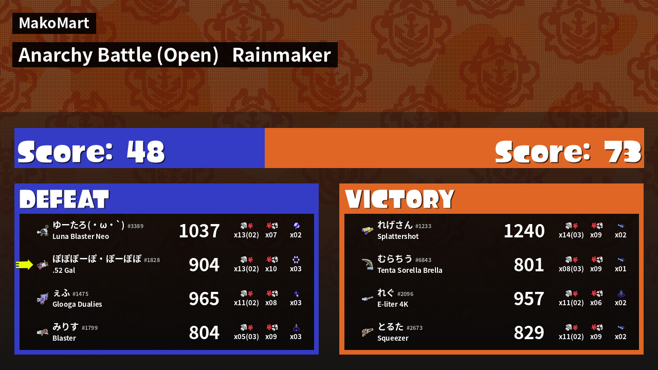 | Mode | Rainmaker - Anarchy Battle (Open) | ||