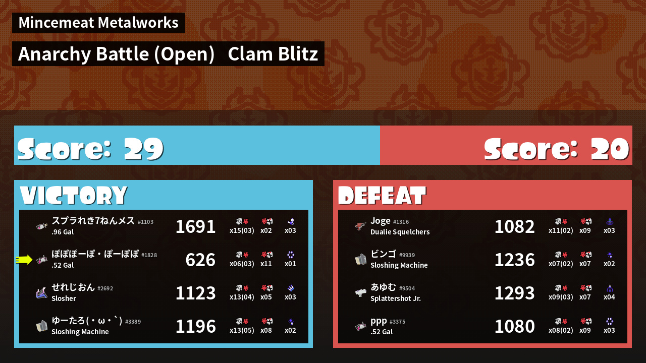 | Mode | Clam Blitz - Anarchy Battle (Open) | ||