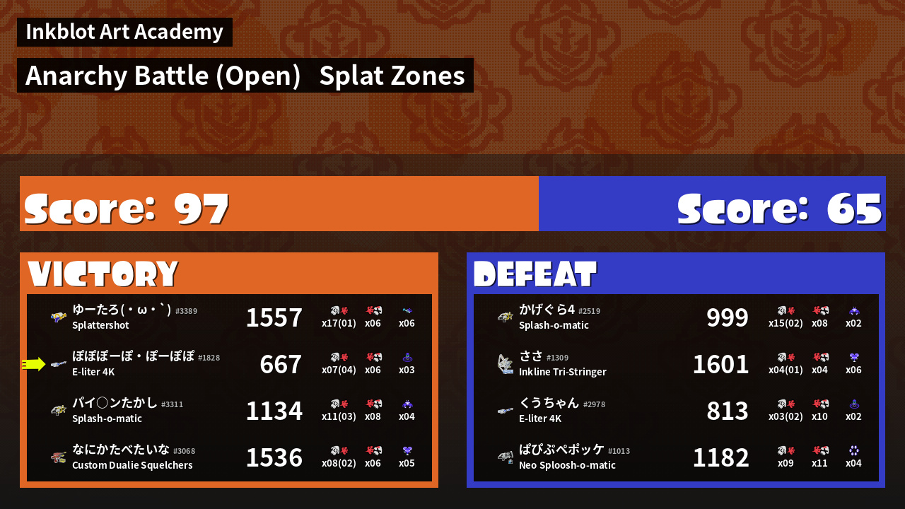 | Mode | Splat Zones - Anarchy Battle (Open) | ||