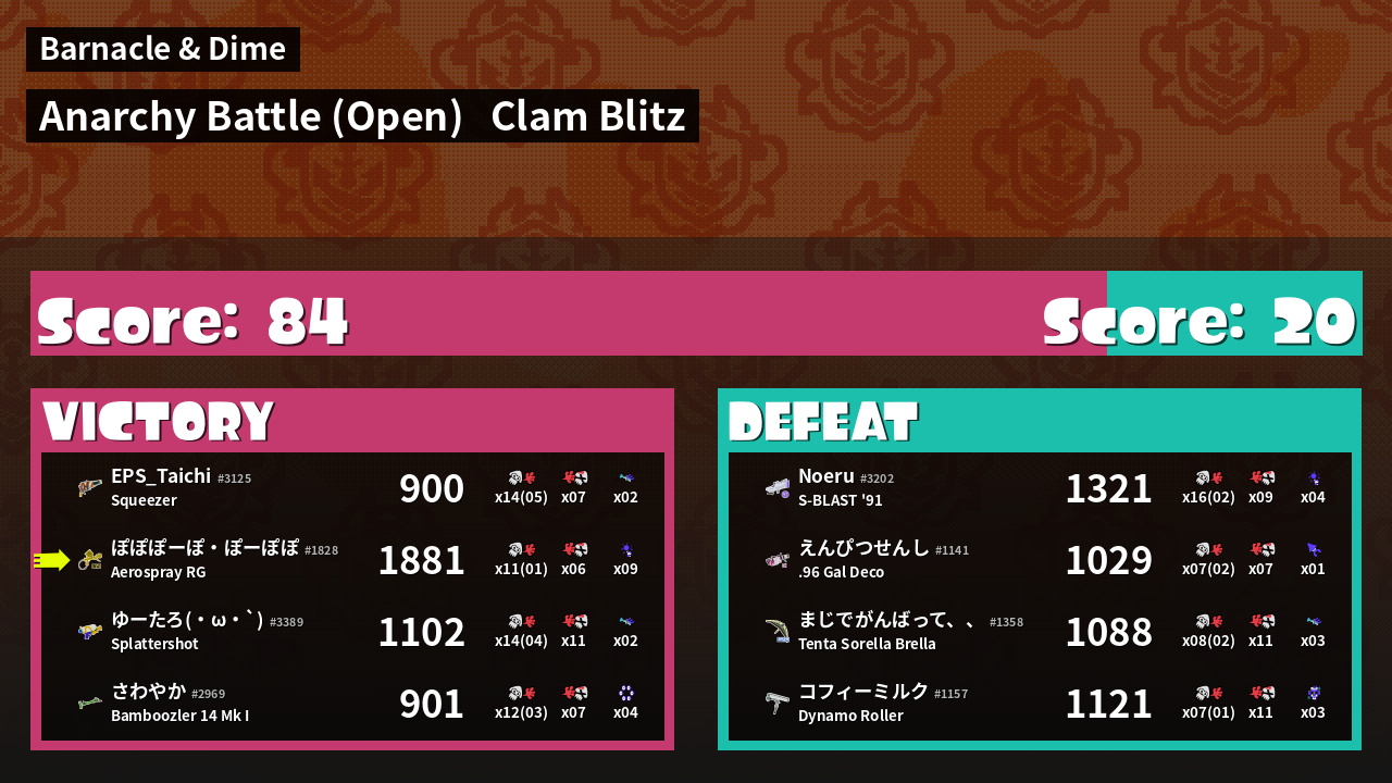 | Mode | Clam Blitz - Anarchy Battle (Open) | ||