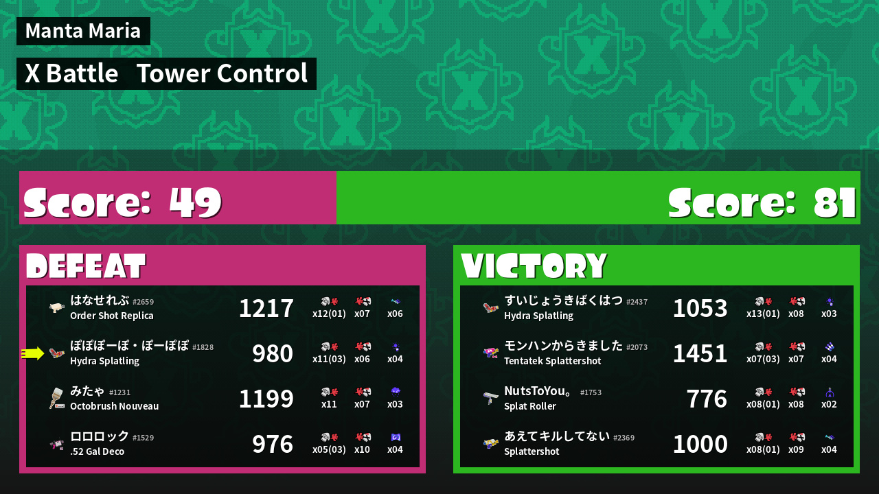 Kills / Deaths | 8 + 3 / 6 > Kill Ratio: 1.33 | ||