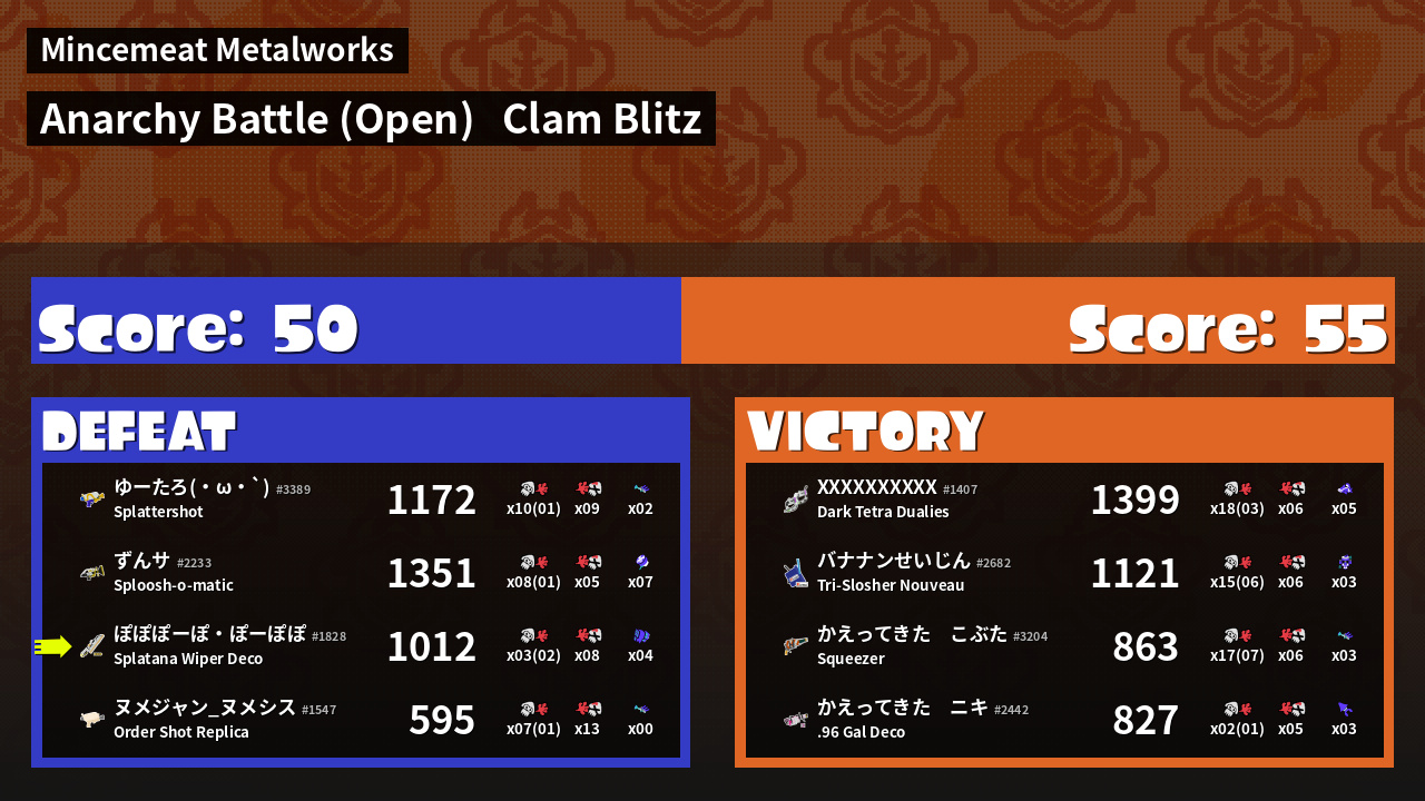 | Mode | Clam Blitz - Anarchy Battle (Open) | ||