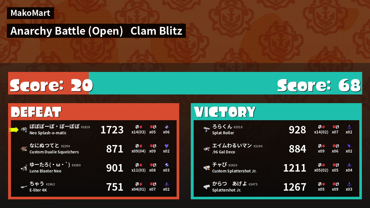 | Mode | Clam Blitz - Anarchy Battle (Open) | ||